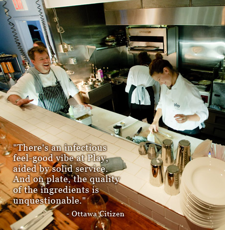 Play is the creation of Stephen Beckta and Chef Michael Moffatt of the renowned Beckta dining & wine. Our hope is to offer you extraordinary food & wine with fun, value and the same warm hospitality that we have become known for. Our menu focuses on constantly changing small plates and large selection of wines by-the-glass. We hope to be able to introduce more Play to your dining life soon!